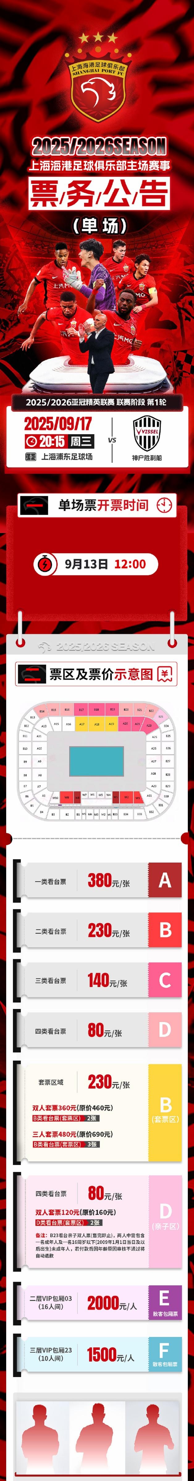 票务公告 亚冠精英联赛第1轮 海港vs胜利船 将于9月13日12:00开票 xiaoqiao 2026-01-10 德甲 8 0 票务公告2025/2026亚冠精英联赛第1轮,上海海港vs神户胜利船的比赛将于9月13日12:00开票~